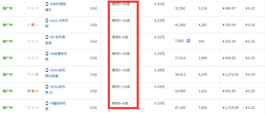 举例,手机壳宝贝,现在就是卡的一个临界点,多数关键词就放在7-10的位置,不去抢太高的位置,太烧钱,同时不能太靠后,拿不到流量。整体账户稳定住,之后,可以出很低的价格,获取流量,同时有一个好的PPC,而不至于翻车!