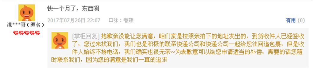 模棱两可的态度,掌柜的回复更像是快捷短语的复制粘贴,为了回评而回评!