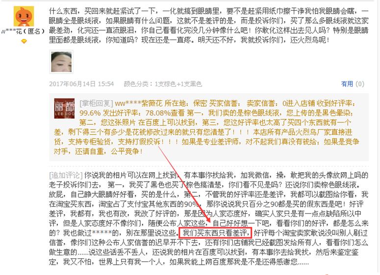 看图4说话,顾客针对眼线笔不满意,卖家的解释里没有提出任何解决方案,也没有告知可以办理退货。然后就草草的结束了。