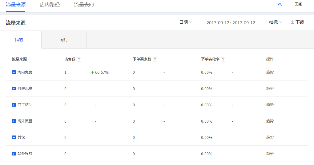 而整天的访客数主要看你的付费流量投入的情况,如果说一直投入是比较大的话,那么你就会下降的慢一些,而对于这样就说明你的店铺的问题是非常大的了。